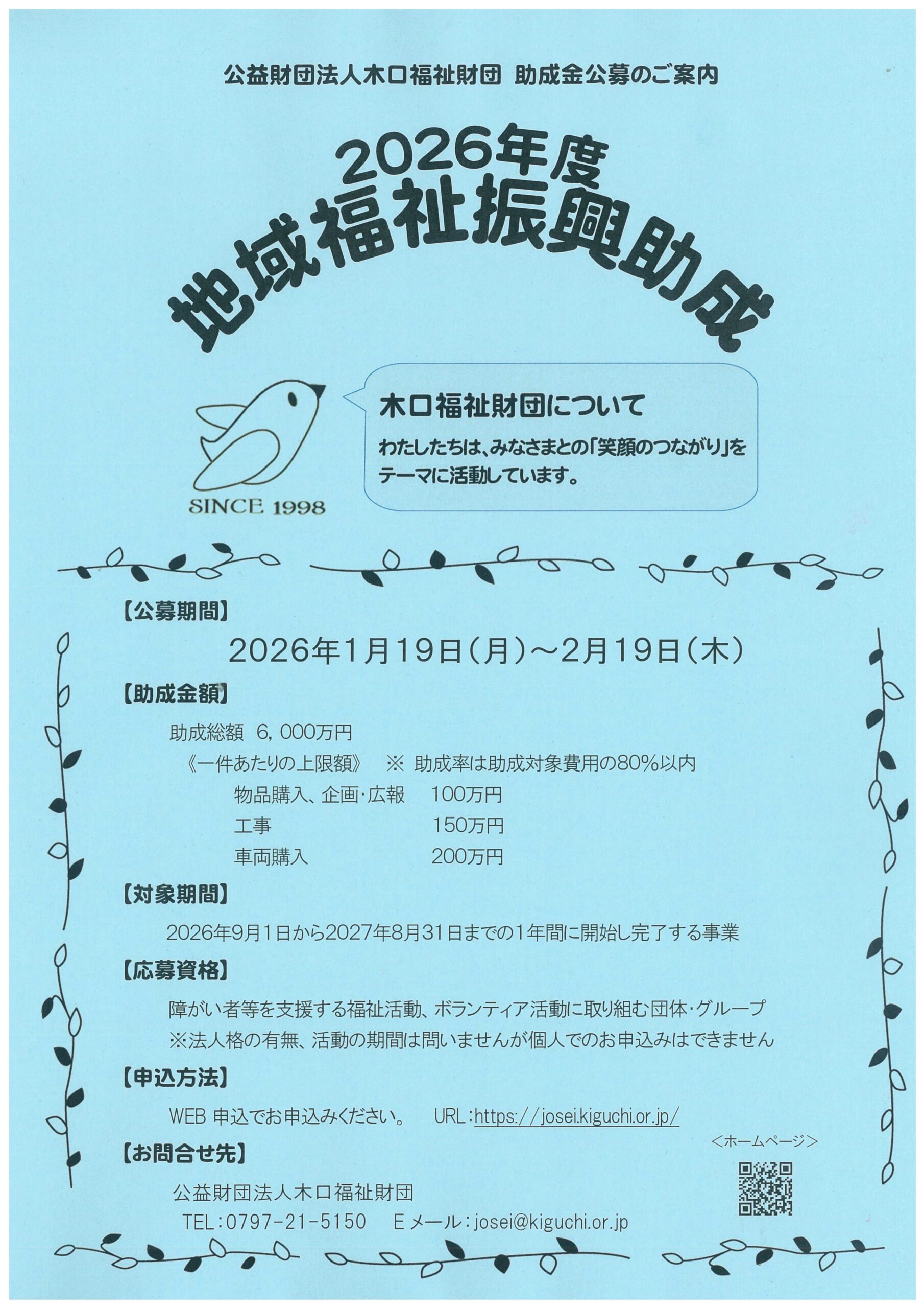 2026年度地域福祉振興助成のご案内を掲載しました